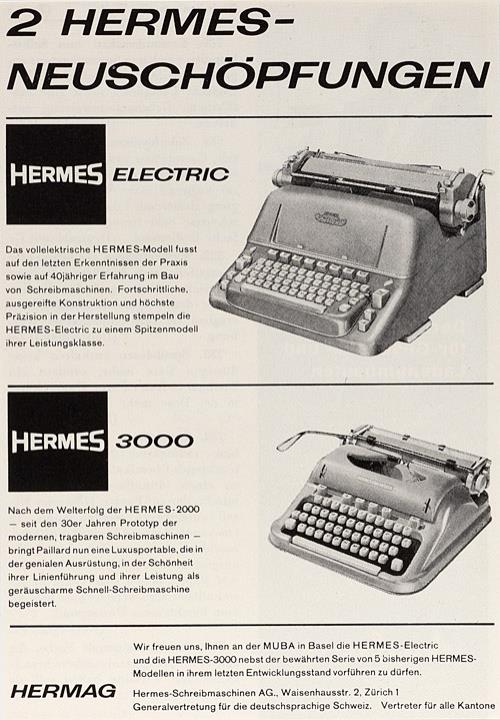 Werbeanzeige für Schreibmaschinen Hermes monochrom
