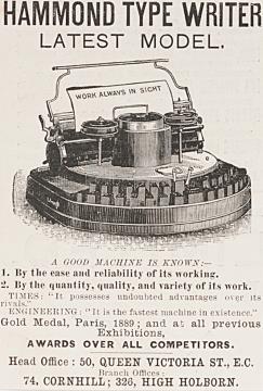 Werbeanzeige für Schreibmaschine Hammond monochrom