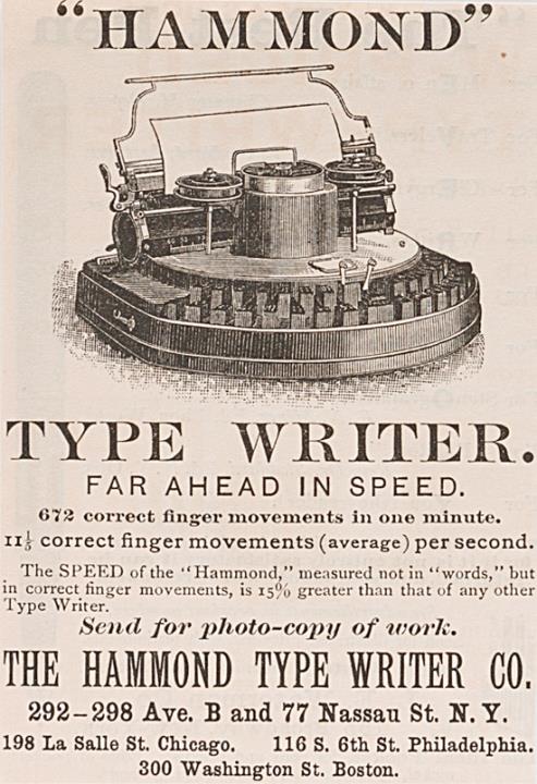 Werbeanzeige für Schreibmaschine Hammond monochrom