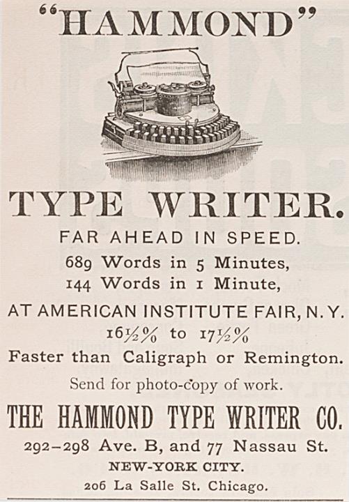Werbeanzeige für Schreibmaschine Hammond monochrom