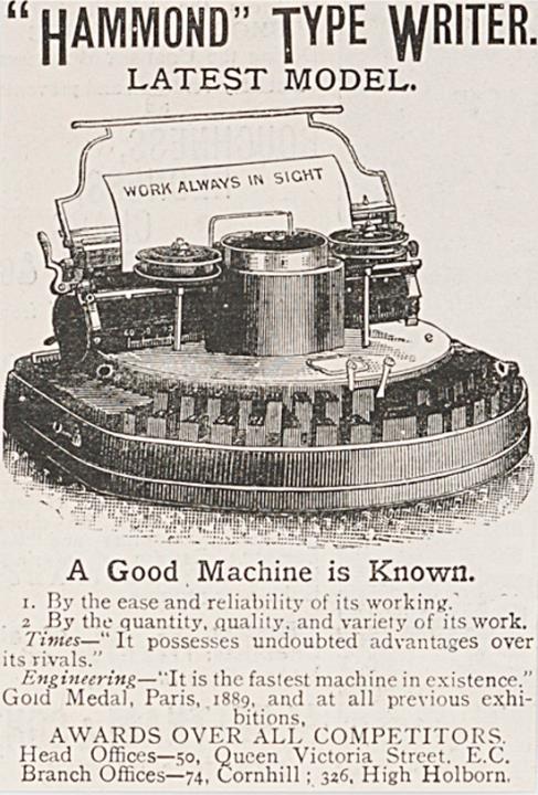 Werbeanzeige für Schreibmaschine Hammond monochrom