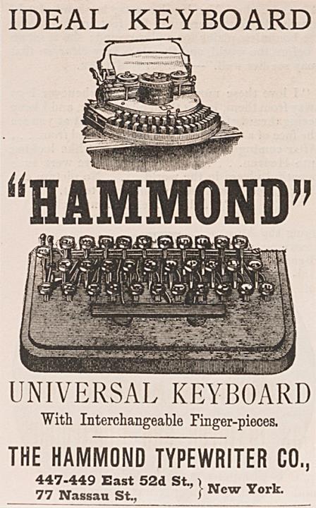 Werbeanzeige für Schreibmaschine Hammond monochrom