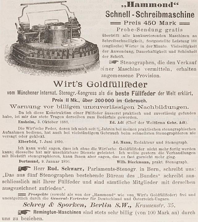 Werbeanzeige für Schreibmaschine Hammond monochrom