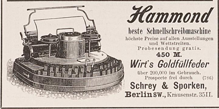 Werbeanzeige für Schreibmaschine Hammond monochrom