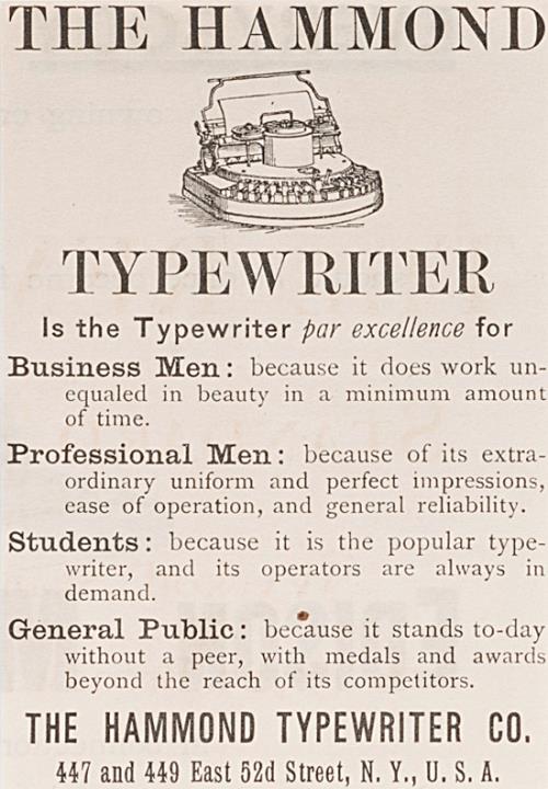 Werbeanzeige für Schreibmaschine Hammond monochrom