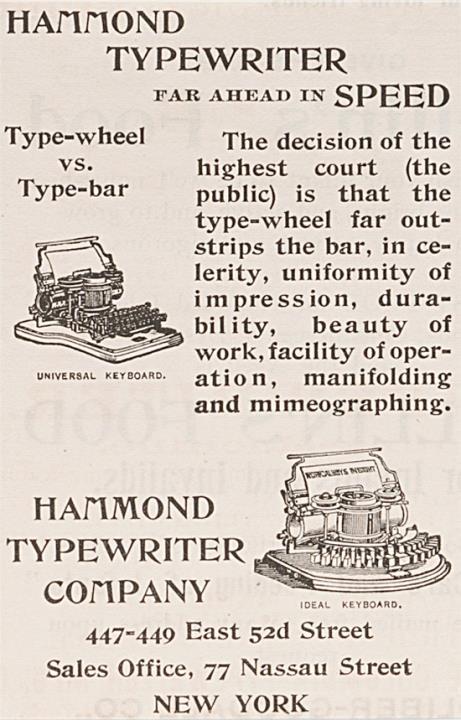 Werbeanzeige für Schreibmaschine Hammond monochrom