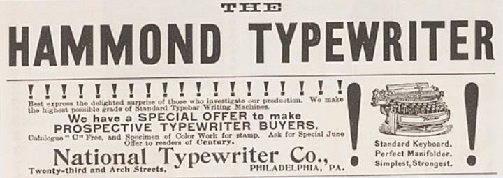 Werbeanzeige für Schreibmaschine Hammond monochrom