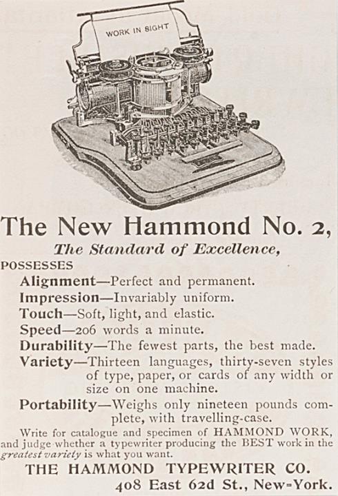 Werbeanzeige für Schreibmaschine Hammond monochrom