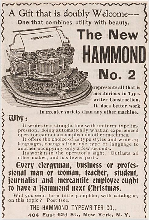 Werbeanzeige für Schreibmaschine Hammond monochrom