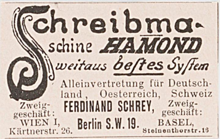 Werbeanzeige für Schreibmaschine Hammond monochrom
