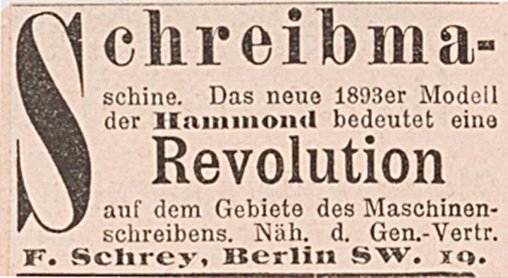 Werbeanzeige für Schreibmaschine Hammond monochrom