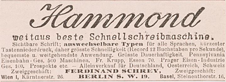 Werbeanzeige für Schreibmaschine Hammond monochrom
