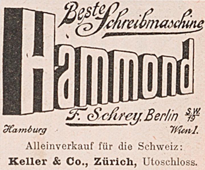 Werbeanzeige für Schreibmaschine Hammond monochrom