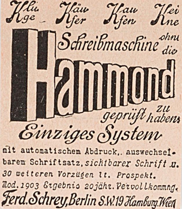 Werbeanzeige für Schreibmaschine Hammond monochrom, drei Exemplare
