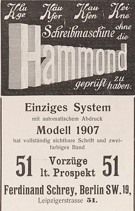 Werbeanzeige für Schreibmaschine Hammond monochrom
