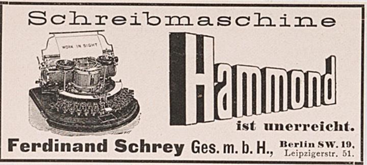 Werbeanzeige für Schreibmaschine Hammond monochrom
