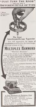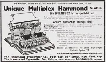 Werbeanzeige für Schreibmaschine Hammond Multiplex monochrom