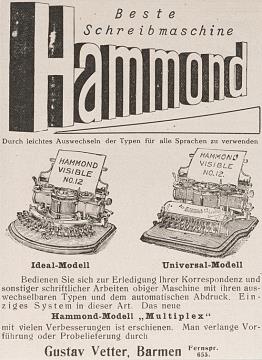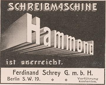 Werbeanzeige für Schreibmaschine Hammond monochrom