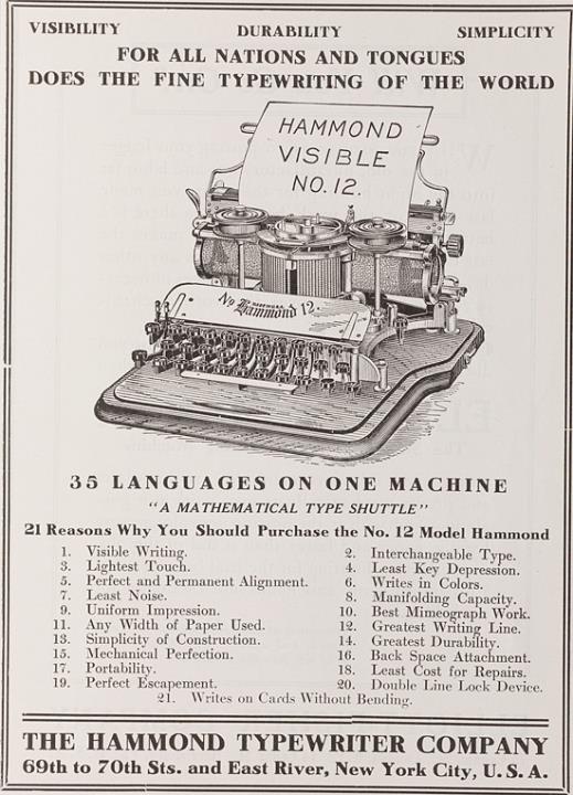 Werbeanzeige für Schreibmaschine Hammond monochrom