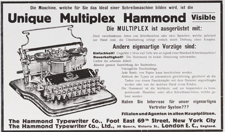 Werbeanzeige für Schreibmaschine Hammond monochrom