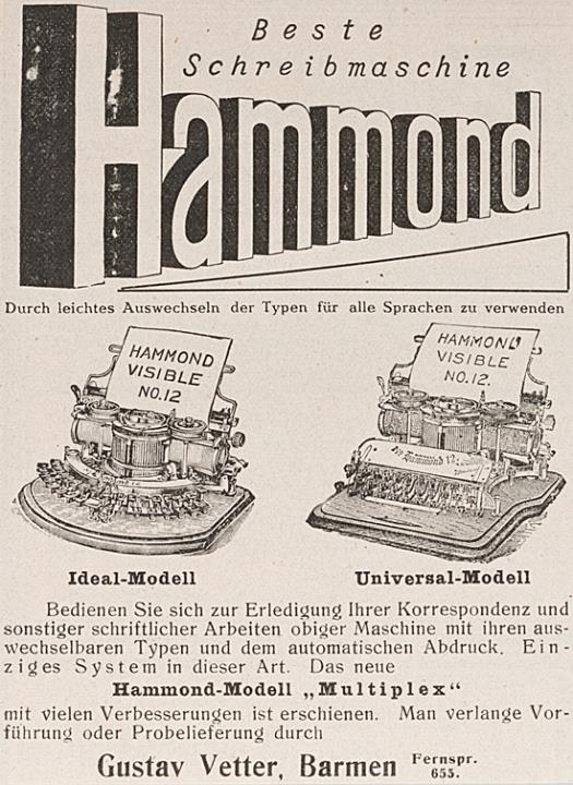 Werbeanzeige für Schreibmaschine Hammond monochrom