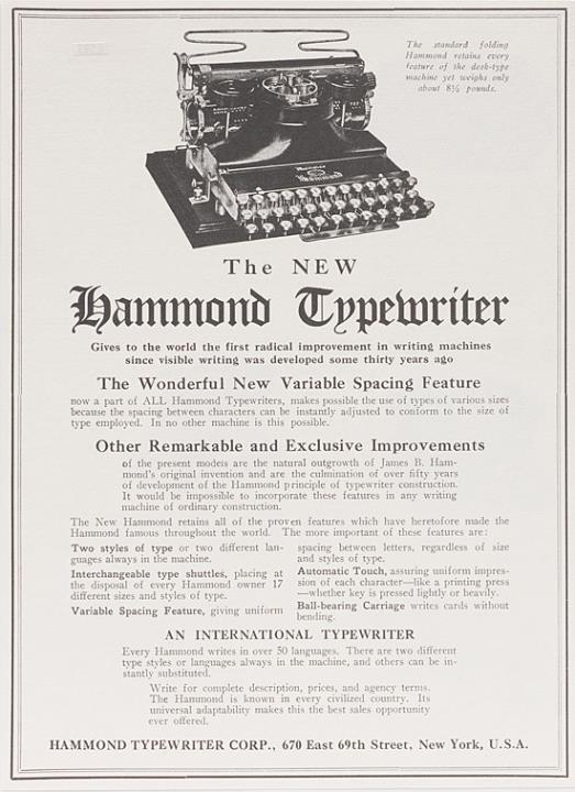 Werbeanzeige für Schreibmaschine Hammond monochrom