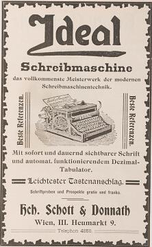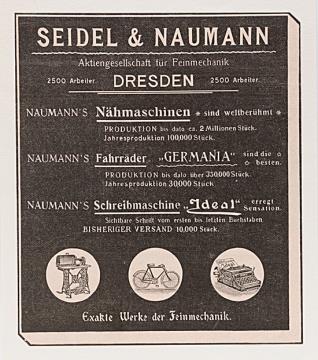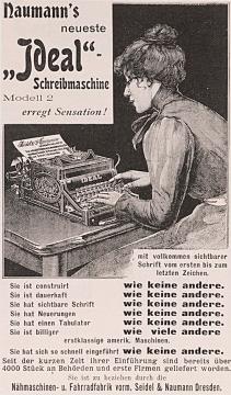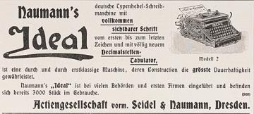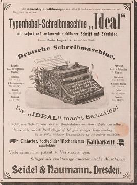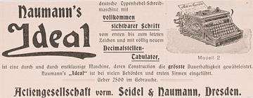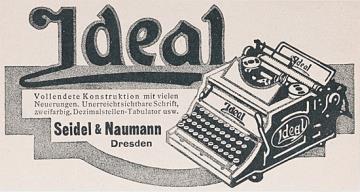 Werbeanzeige des Schreibmaschinenherstellers Seidel & Naumann monochrom
