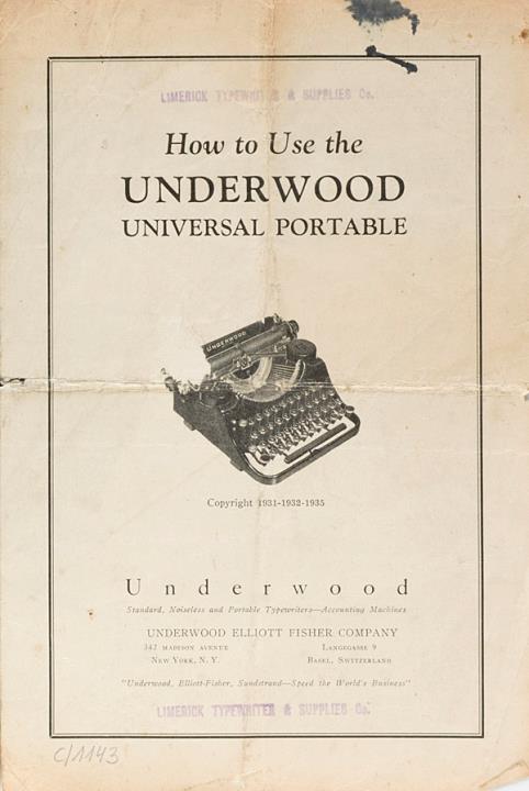 Underwood, Tragbare Schreibmaschine, Typenhebel