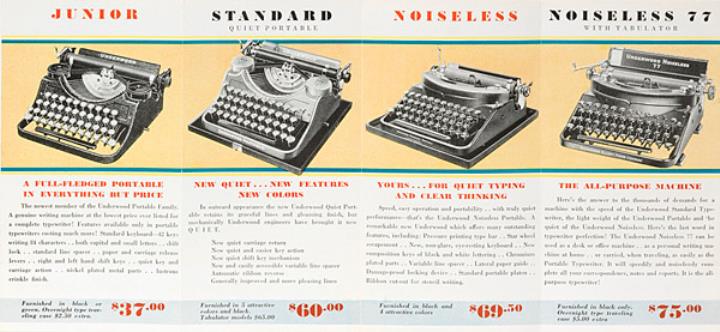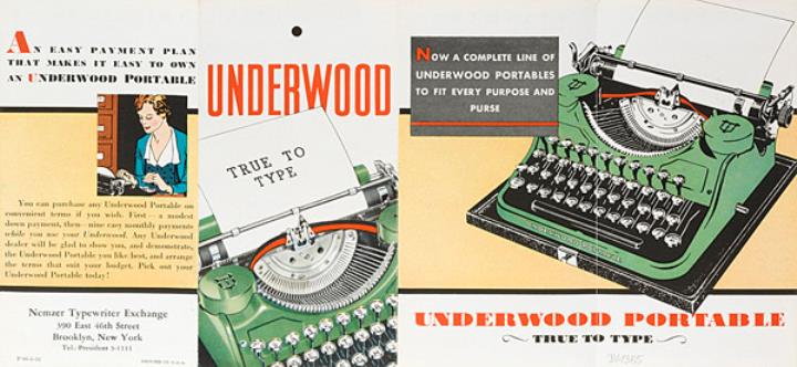 Faltprospekt für tragbare Schreibmaschine Underwood Nr. P86-3-33