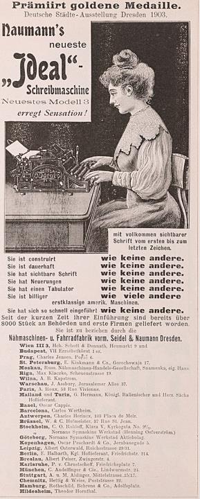 Werbeanzeige für Schreibmaschine Ideal 3 monochrom
