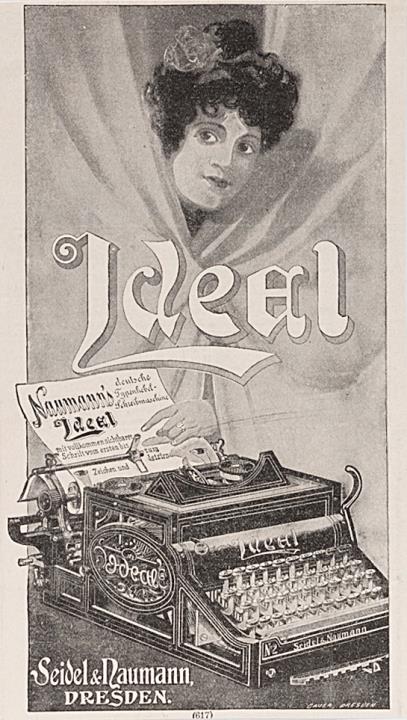 Werbeanzeige für Schreibmaschine Ideal monochrom