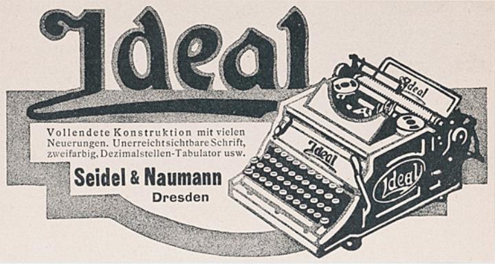 Werbeanzeige für Schreibmaschine Ideal monochrom