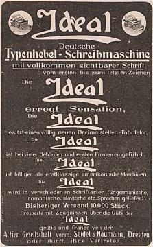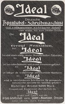 Werbeanzeige für Schreibmaschine Ideal monochrom