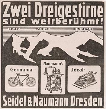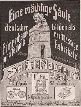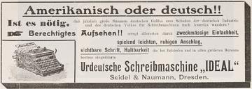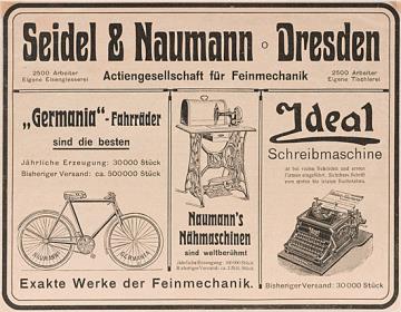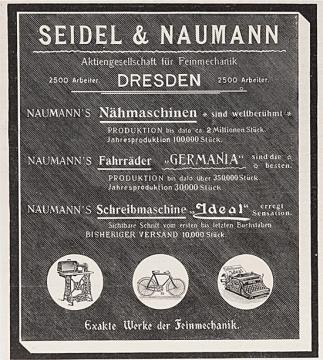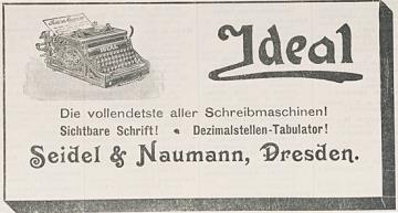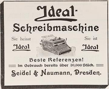 Werbeanzeige des Schreibmaschinenherstellers Seidel & Naumann monochrom