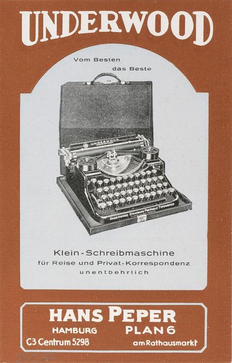 Next to literature on the history of technology, of the typewriter and the office, the Archive holds patent letters, textbooks and instruction manuals as well as historical postcards, letters, photographs and various kinds of advertising (leaflets and brochures, advertising stamps, newspaper ads, posters and signs, promotional gifts).