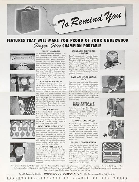 To Remind You [...] Underwood Finger-Flite Champion Portable