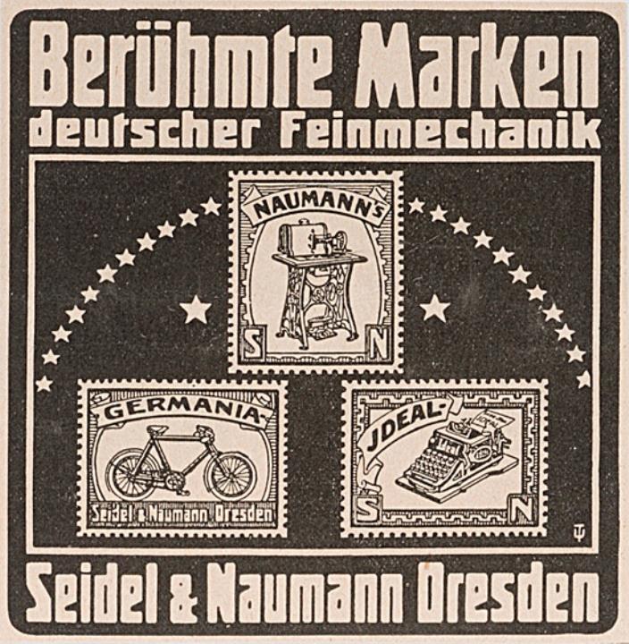 Werbeanzeige des Schreibmaschinenherstellers Seidel & Naumann monochrom, Grafik: TU(?)