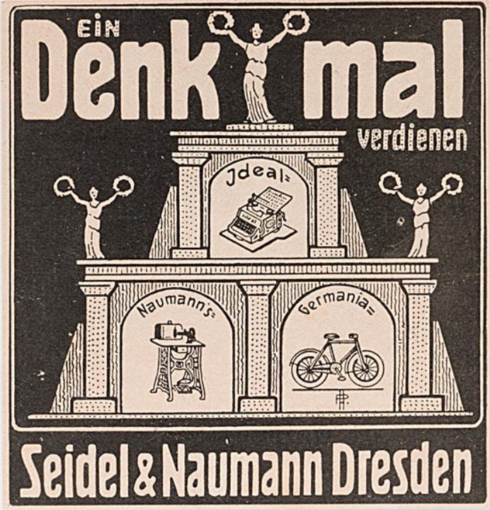 Ein Denkmal verdienen Ideal-Schreibmaschine Naumann's Nähmaschine Germania-Fahrrad