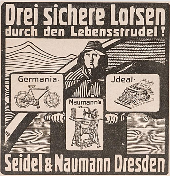 Werbeanzeige des Schreibmaschinenherstellers Seidel & Naumann monochrom, Grafik: TU(?)