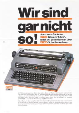 Prospekt für elektronische Schreibmaschine Utax T-1000 Datum handschriftlich vermerkt