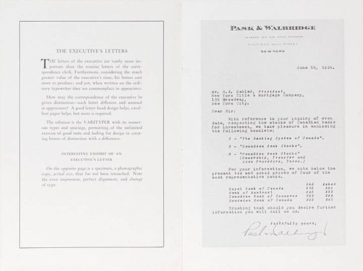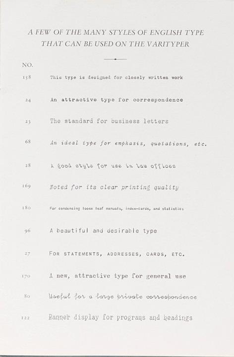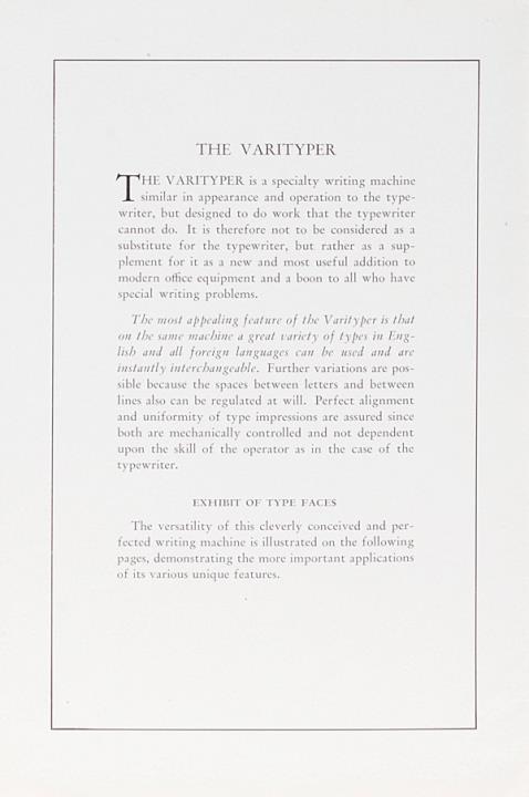 Prospekt für Schreibmaschine Varityper, zwei Exemplare (eines fotokopiert, gebunden)