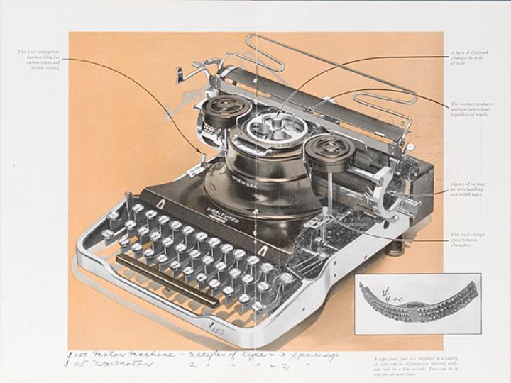 Next to literature on the history of technology, of the typewriter and the office, the Archive holds patent letters, textbooks and instruction manuals as well as historical postcards, letters, photographs and various kinds of advertising (leaflets and brochures, advertising stamps, newspaper ads, posters and signs, promotional gifts).
