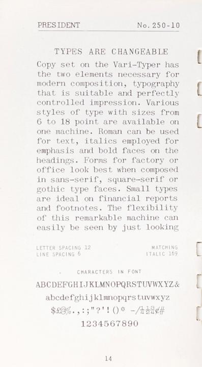 Schriftartenverzeichnis für Schreibmaschine Varityper