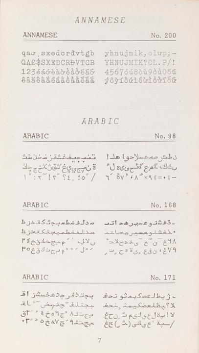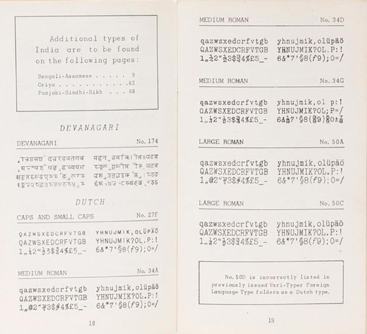 Schriftartenverzeichnis für Schreibmaschine Varityper