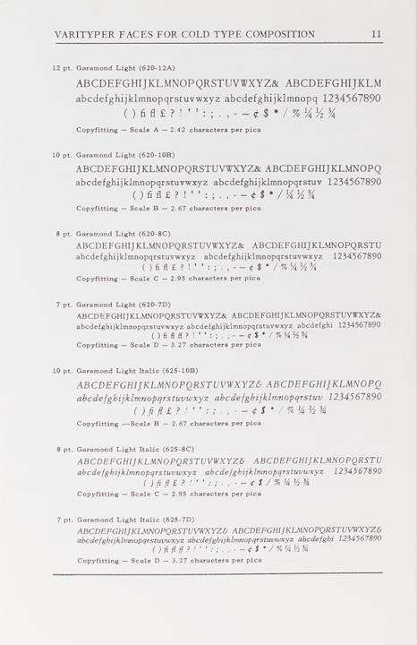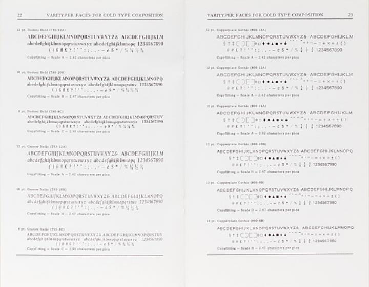 Schriftarten- und Tastaturenverzeichnis für Schreibmaschine Varityper Nr. 2425