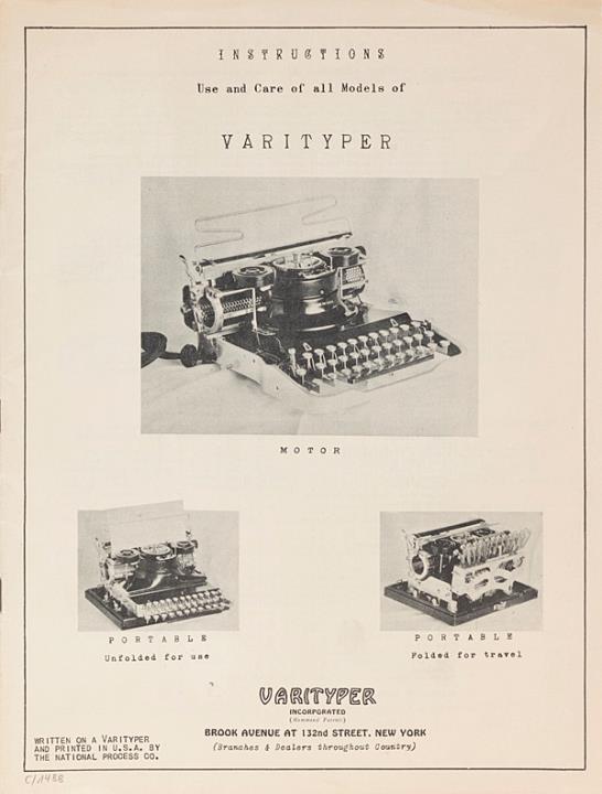 Instructions Use and Care of all Models of Varityper