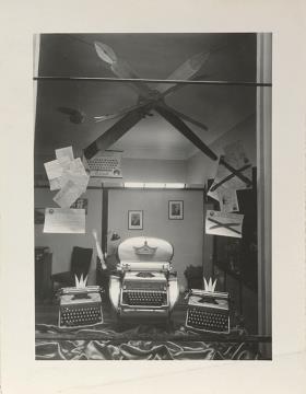 Fotografie, monochrom Foto: Foto Arte Meran Verkaufsraum einer Schreibmaschinenhandlung mit Werbedekoration