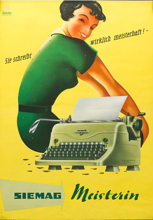 Werbeplakat für Schreibmaschine Siemag oberer Rand rückseitig mit Klebeband verstärkt Grafik?: Böcker Wetzlar