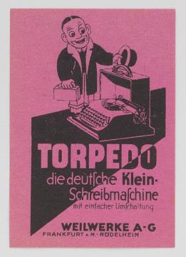 Siegelmarke für Schreibmaschine Torpedo rechteckig, monochrom