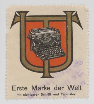 Reklamemarke/Werbemarke für Schreibmaschine Underwood rechteckig, polychrom